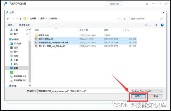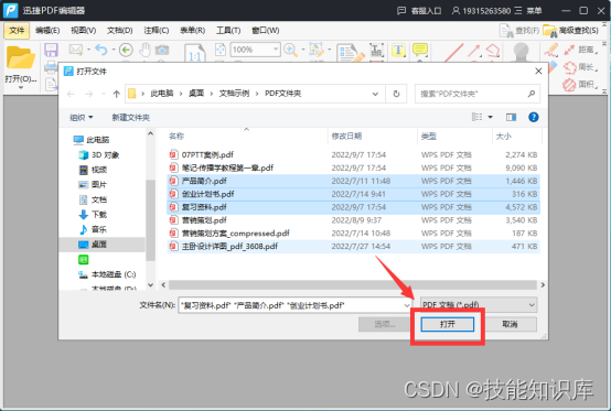 ① 第一步,我们在电脑中打开软件,在文件中把需要合并的PDF文件选中,点击【打开】添加进来。