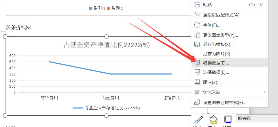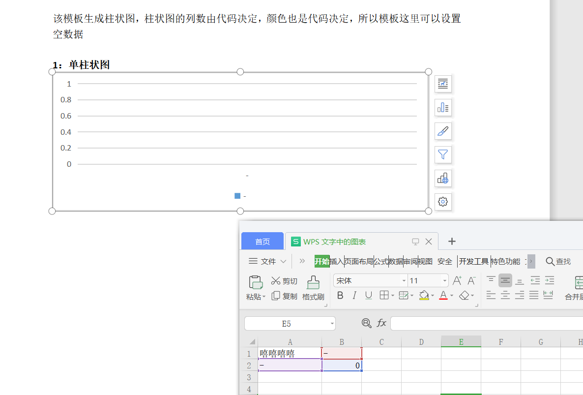 2.准备word模板文件,注意后缀是docx,模板中的图表可以有数据,但是最终会被代码替换,所以不重要