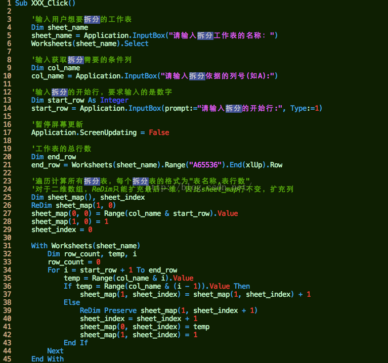 sheet_name = Application.InputBox("请输入拆分工作表的名称:")
