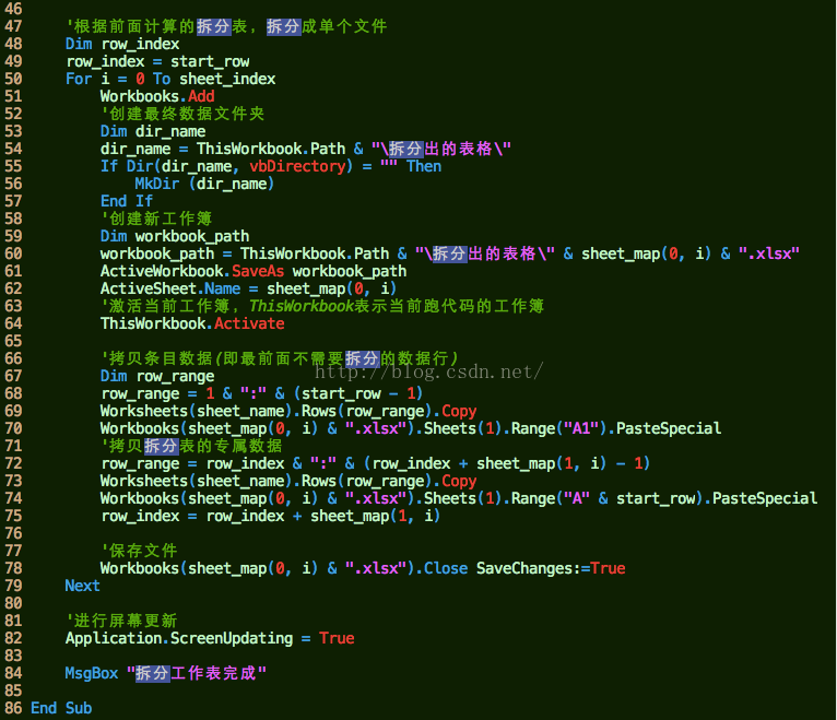 以上就是受伤乌冬面最近收集整理的关于使用VBA将Excel工作表分割成多个文件的全部内容,更多相关使用VBA将Excel工作表分割成多个文件内容请搜索靠谱客的其他文章。