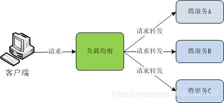 在微服务架构中,负载均衡是必须使用的技术,通过它来实现系统的高可用、集群扩容等功能。负载均衡通常分为两种:服务端负载均衡和客户端负载均衡。通常所说的负载均衡均指服务器端的负载均衡,可通过软件或硬件设备来实现,软件如:Nginx、LVS等,硬件如:F5、A10等,硬件负载均衡设备成本较高,大部分采用的是软件方式。架构图如下: