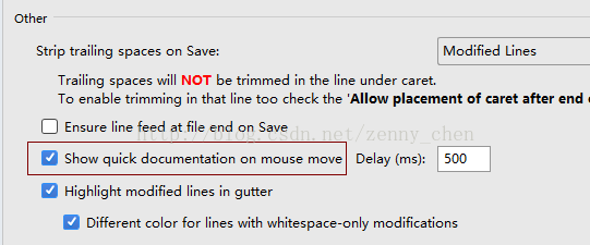 随后在右边栏找到Others栏目组,勾选上"Show quick document on mouse move"即可。如下图所示