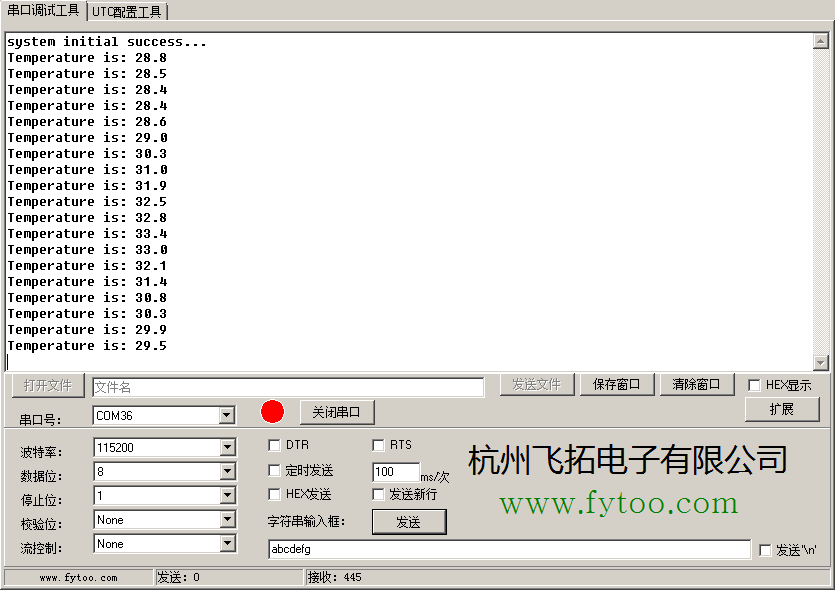 在main函数中开启的串口用于显示温度,因为不读只往外写
