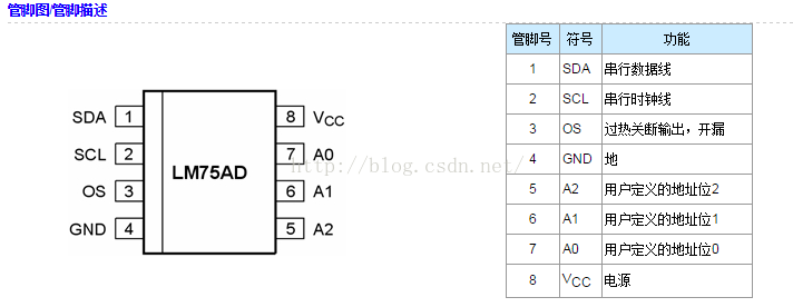 现在lm75a对外有4个引脚,分别是VCC,GND,SDA,SCL