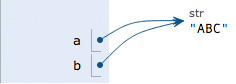 执行b = a,解释器创建了变量 b,并把b指向 a 指向的字符串'ABC':