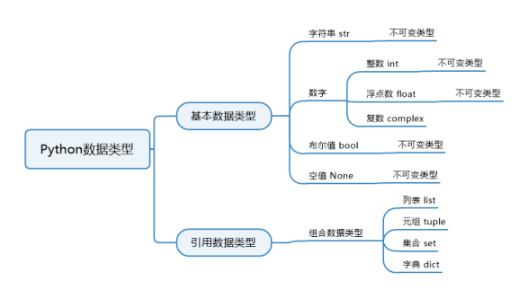 字符串str;整数 int;浮点数 float;复数 complex;布尔值 bool;空值 None 其中字符串、整数、浮点数、布尔值、空值均为不可变数据类型,我们在对这些数据类型进行修改时,只是把变量链接到了新的数据上,并没有对原数据进行修改