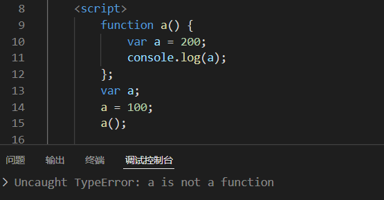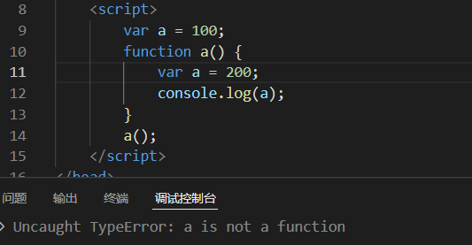 因为是函数声明优先级更高,所以提升到最前面,并且优于变量声明,之后a重新赋值,所以TypeError。