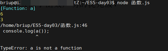 这里我们发现输出放在前面输出a的值,而放在后面会提示a不是一个函数,这里和前面一样变量a的赋值会影响输出的结果。我们猜想a未赋值,函数声明优先级高于变量?当a赋值之后会覆盖函数a,那为什么变量的赋值会覆盖函数呢?