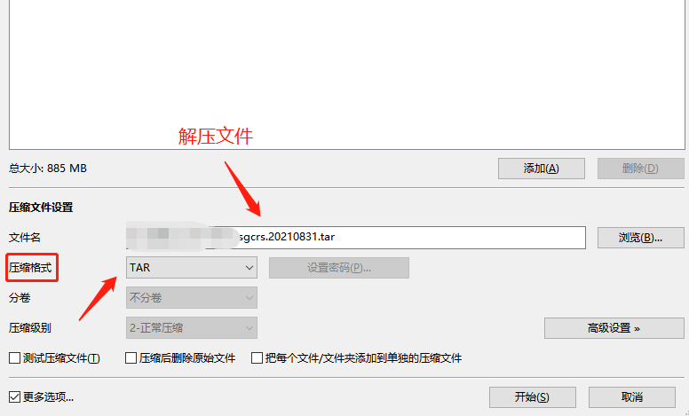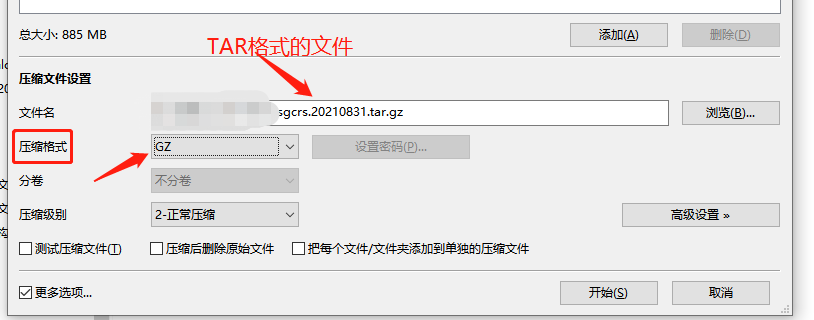 3.将tar格式的压缩文件再次添加到工具中,在压缩为(.gz)格式;