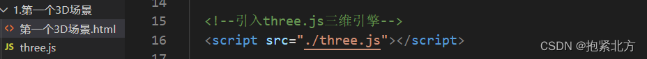 首先我们要在html文件中引入three.js,就像引入其它.js文件一样直接引入,它需要去官网下载