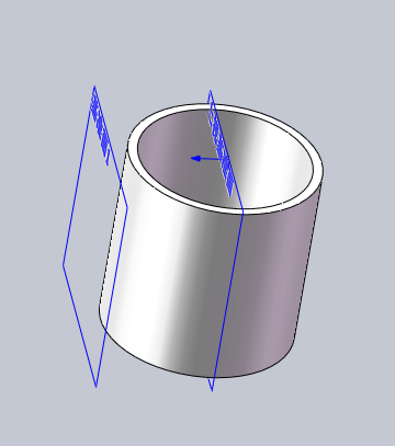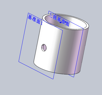 3、在圆柱体零件模型的外面建立一个平行于圆柱体轴线的基准面