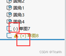 31、 如果草图为欠定义,在FeatureManager 设计树上的草图名称前面会出现一个负号,如果草图为过定义,则草图名称前面会出现一个正号。