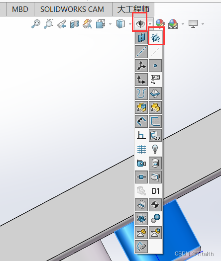 27、 可以使用菜单上的“隐藏/显示项目”来切换基准面、基准轴以及原点的显示或关闭。