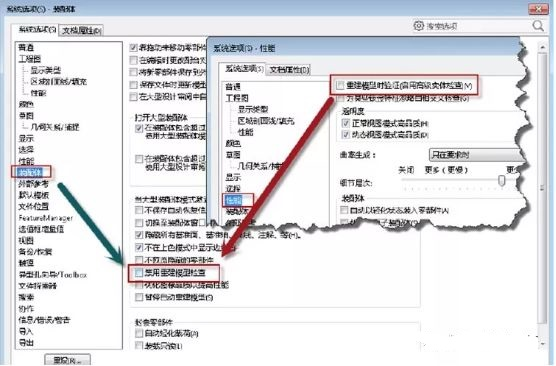 5.在系统选项中禁用大装配体重建模型检查,同样可以减少耗时的操作。