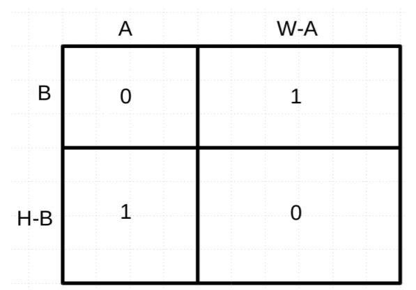 putchar('0' ^ (i < B) ^ (j < A));