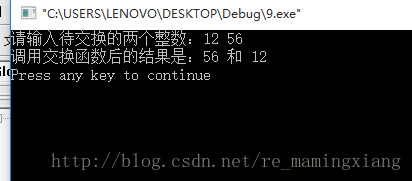 * 问题描述:输入两个待交换的整数,调用函数后交换两个函数的值