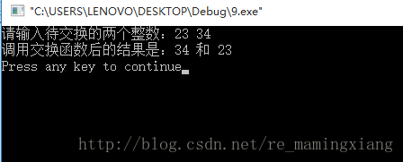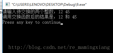 printf("调用交换函数后的结果是:%d 和 %dn", a, b);