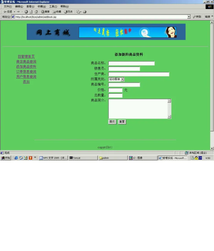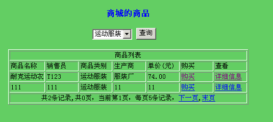 此功能通过<%@ include file="end.htm"%>来实现,避免简单代码的重复编写,也达到美观实用的效果。 - 商品管理