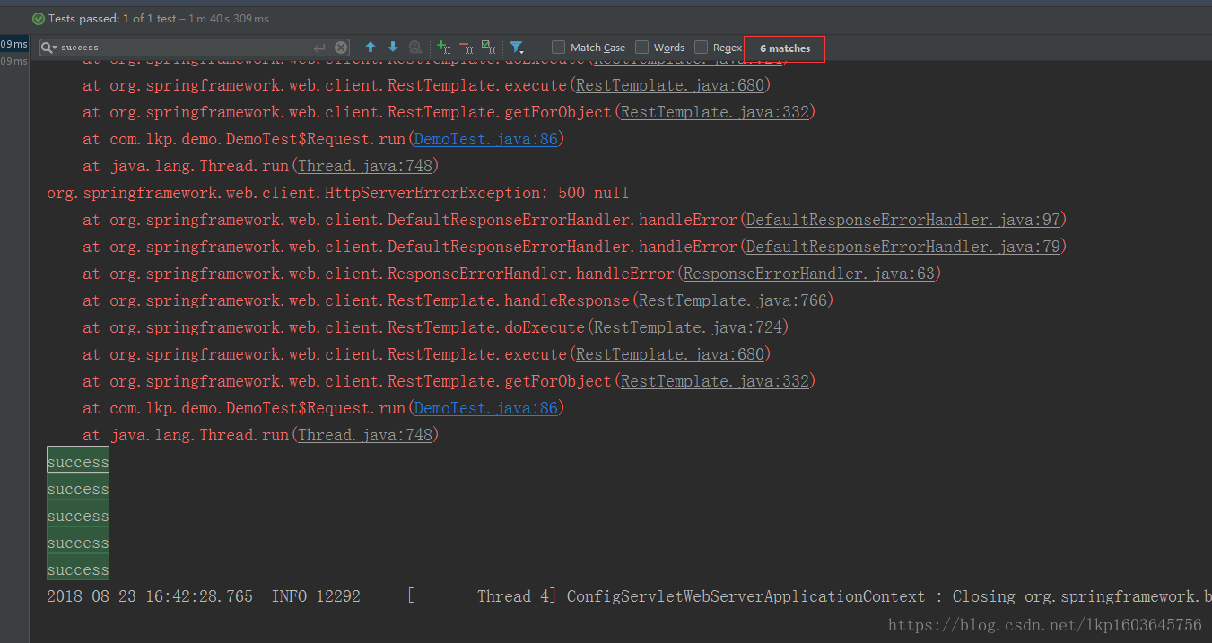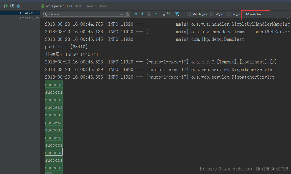 打印了20success,证明20个请求都通过了。