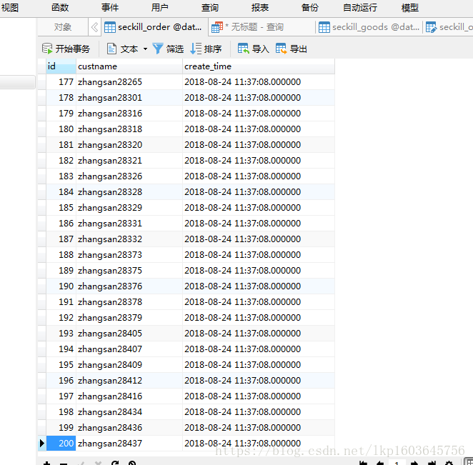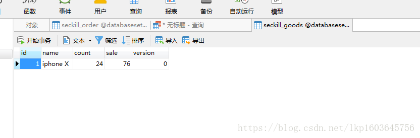 首先,创建数据库,建立seckill_goods和seckill_order表