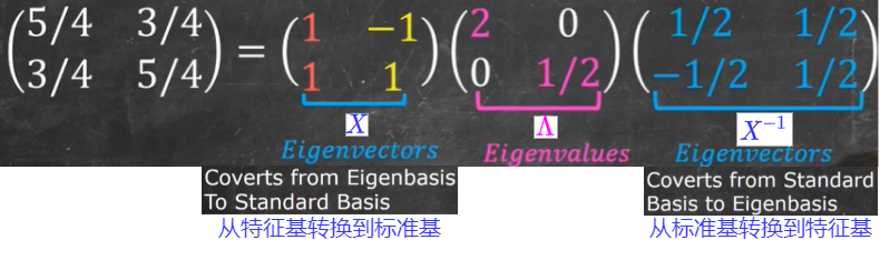 X−1 将特征向量转换到了标准基的位置(我们将此时的特征向量称其为特征基)