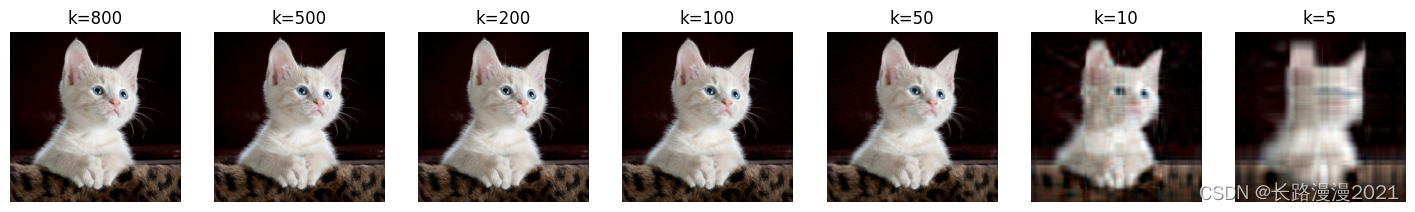 这里, U k U_k Uk是一个 m × k mtimes k m×k的矩阵,由 U U U的前 k k k列得到, V k V_k Vk是 n × k ntimes k n×k矩阵,由 V V V的前 k k k列得到, Σ k Sigma_k Σk是 k k k阶对角矩阵,由 Σ Sigma Σ的前 k k k行 k k k列得到。