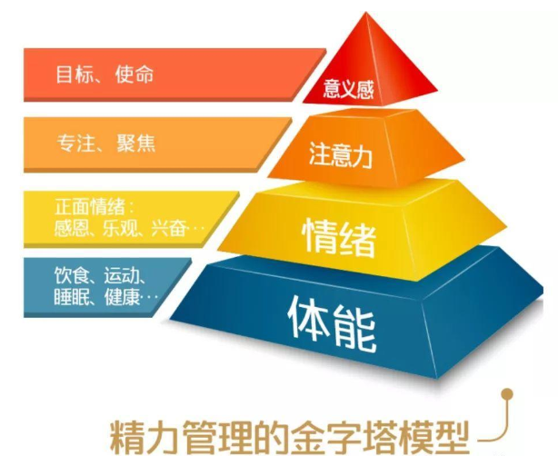 金字塔模型第二层——情绪。现在心理学有大量证明,情绪对人的记忆力、认知力、决策力都有影响,积极正面的情绪是精力输出的保障。