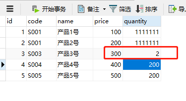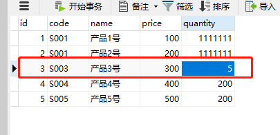 先去查询code是S003的数据quantity