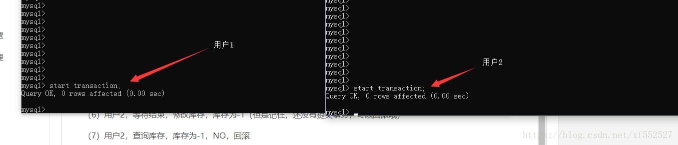 (3)用户1修改库存,库存为0(但是记住,你还没有提交事务)