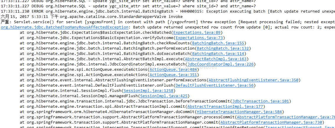还有 saveOrUpdate修改数据库数据时,如果 根据where条件能检索到两条以上的数据,那么执行update也会报错。 而此时,删除多余的数据只保留一条就可以解决了 。