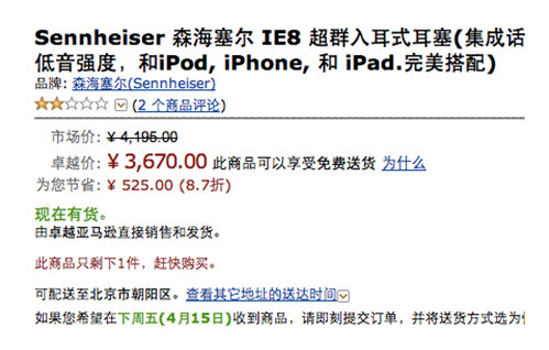 而在卓越亚马逊的系统中,当可用库存数量很少时,会在前台提示客户数量很少,请客户加紧购买,提高转化率(图2)。