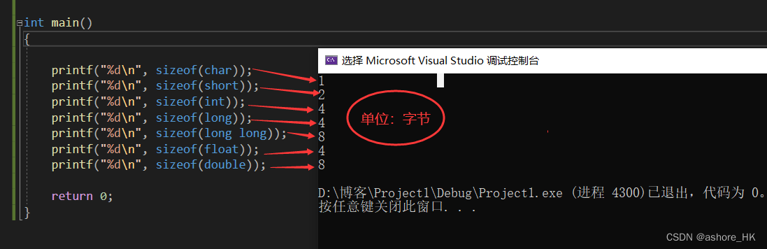 那么这些数据类型怎么求? 这里就要用到 sizeof 来求,如下: