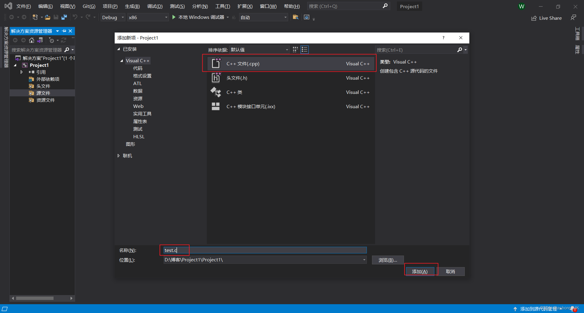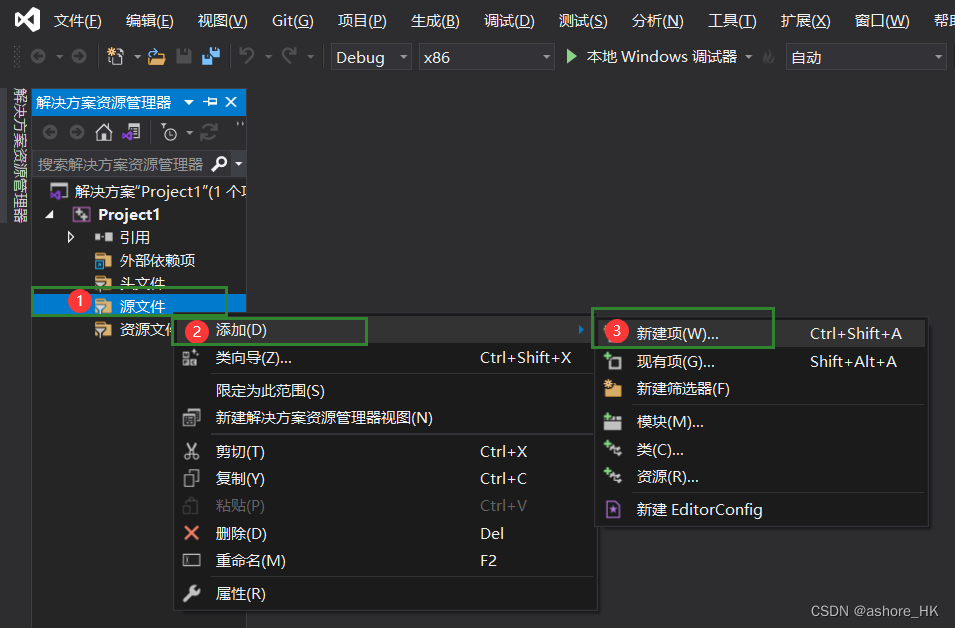 然后 源文件 —> 添加 —> 新建项 就好了: