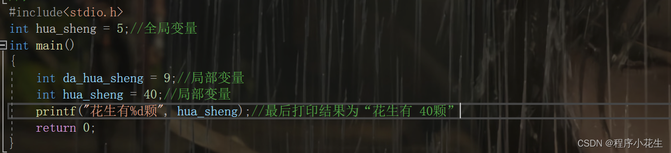 注意:当局部变量和全局变量同名时,局部优先。