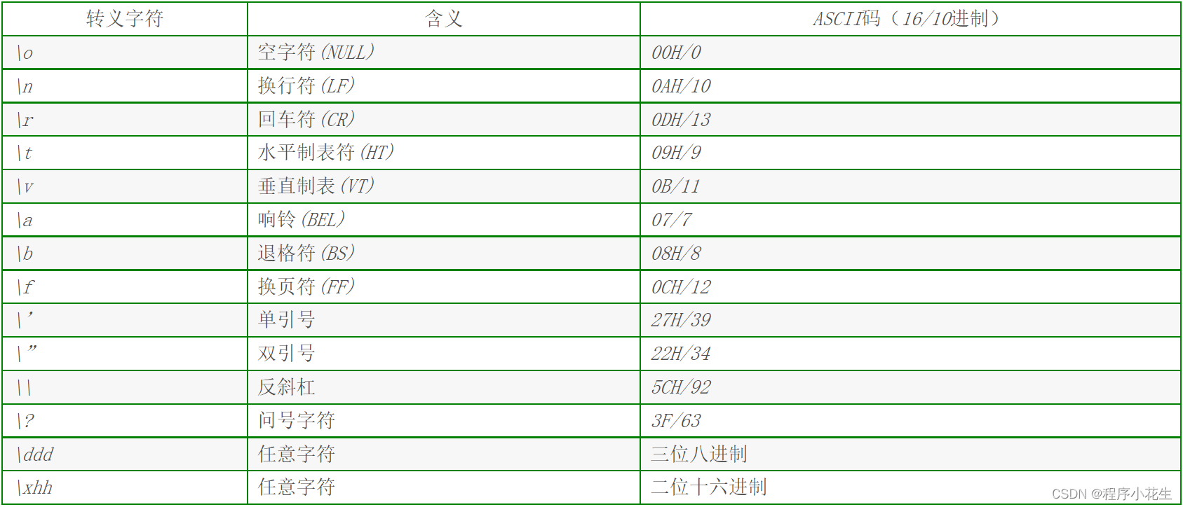 C语言常用的转义字符如下