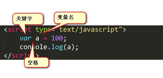 定义变量:var就是一个关键字,用来定义变量。所谓关键字,就是有特殊功能的小词语。关键字后面一定要有空格隔开。