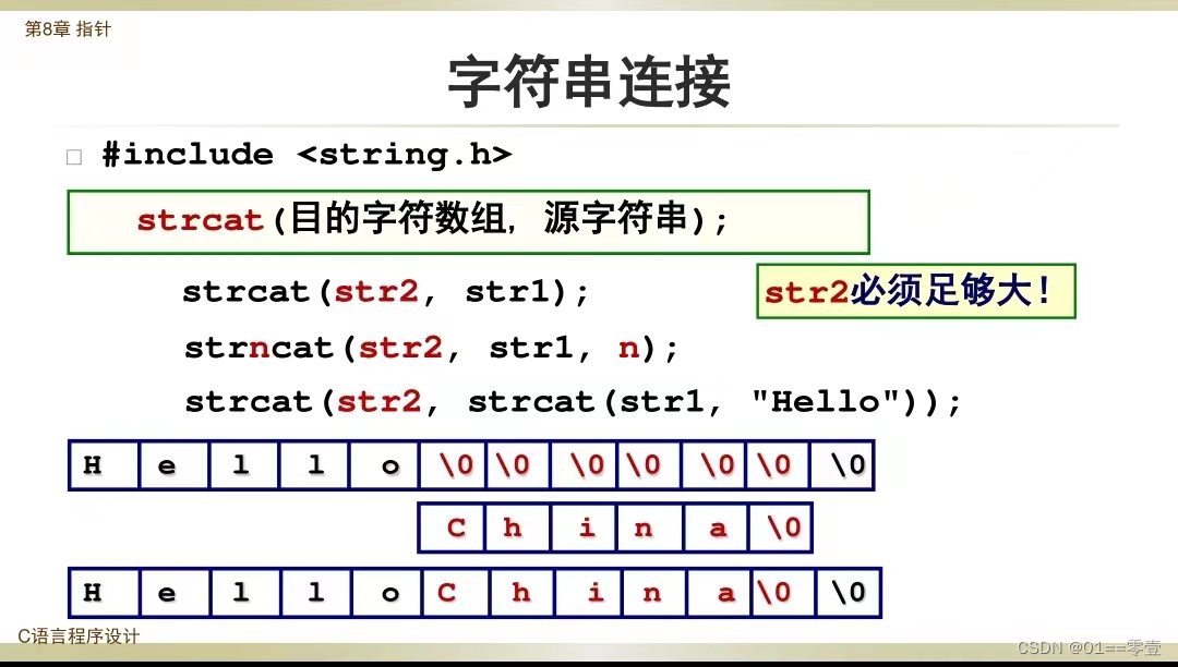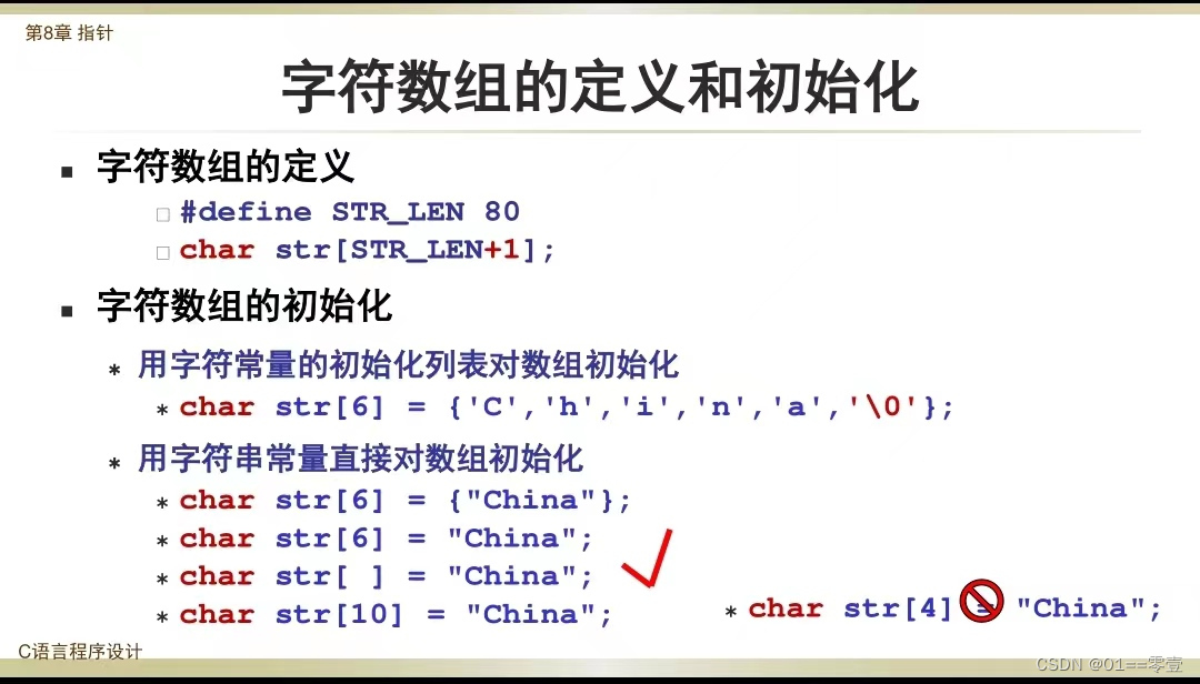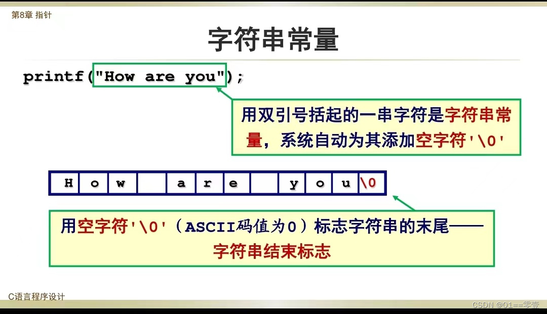字符串数组的最后一个元素必须是 ' ' 才表示字符串,不要混淆 ' ' ( ASCII 码为 0 ) 与 ' 0 ' ( ASCII 码为 48 )。