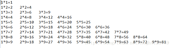 System.out.print(j+"*"+i+"="+i*j+"t");