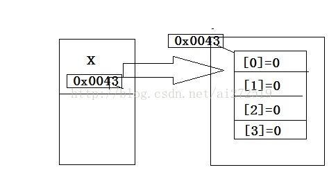 x是通过获取数组的哈希值指向、引用数组。数组的元素初始化值是0.
