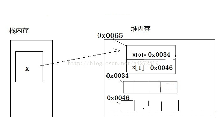 通过图例,表明数组在内存中的结构分配: