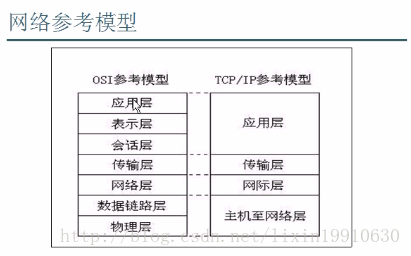 网络通讯模型分为OSI模型和TCP/IP模型。OSI模型是国际标准化组织制定的理想化模型,而现在使用的是TCP/IP模型。如下图,模型分为应用层、传输层(TCP)、网际层(IP)和主机至网络层,我们主要在应用层和传输层之间进行Socket网络编程。