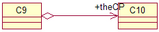 聚合:表示C9聚合C10,但是C10可以离开C9而独立存在(独立存在的意思是在某个应用的问题域中这个类的存在有意义。这句话怎么解,请看下面组合里的解释)。