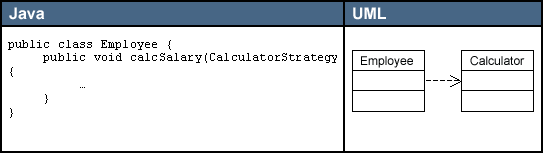 依 赖是一种弱关联,只要一个类用到另一个类,但是和另一个类的关系不是太明显的时候(可以说是“uses”了那个类),就可以把这种关系看成是依赖,依赖也 可说是一种偶然的关系,而不是必然的关系,就是“我在某个方法中偶然用到了它,但在现实中我和它并没多大关系”。例如我和锤子,我和锤子本来是没关系的, 但在有一次要钉钉子的时候,我用到了它,这就是一种依赖,依赖锤子完成钉钉子这件事情。