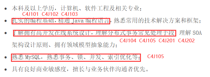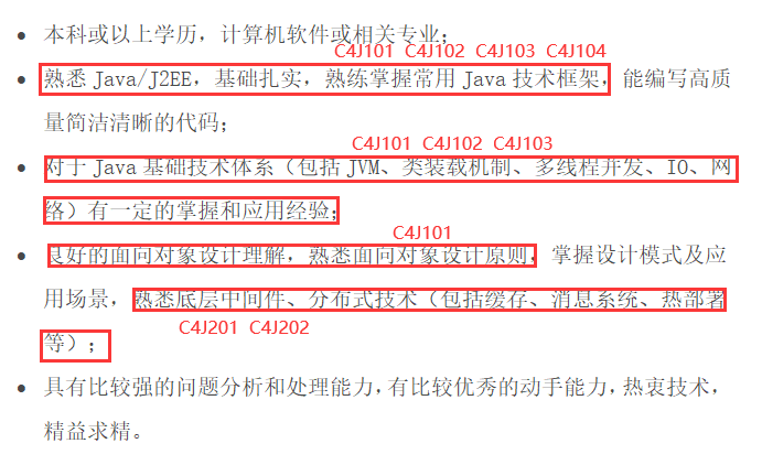 玉龙老师带领大家对标三家大厂的JD,每一则JD中的要求都与Java能力认证中的小模块进行了关联。