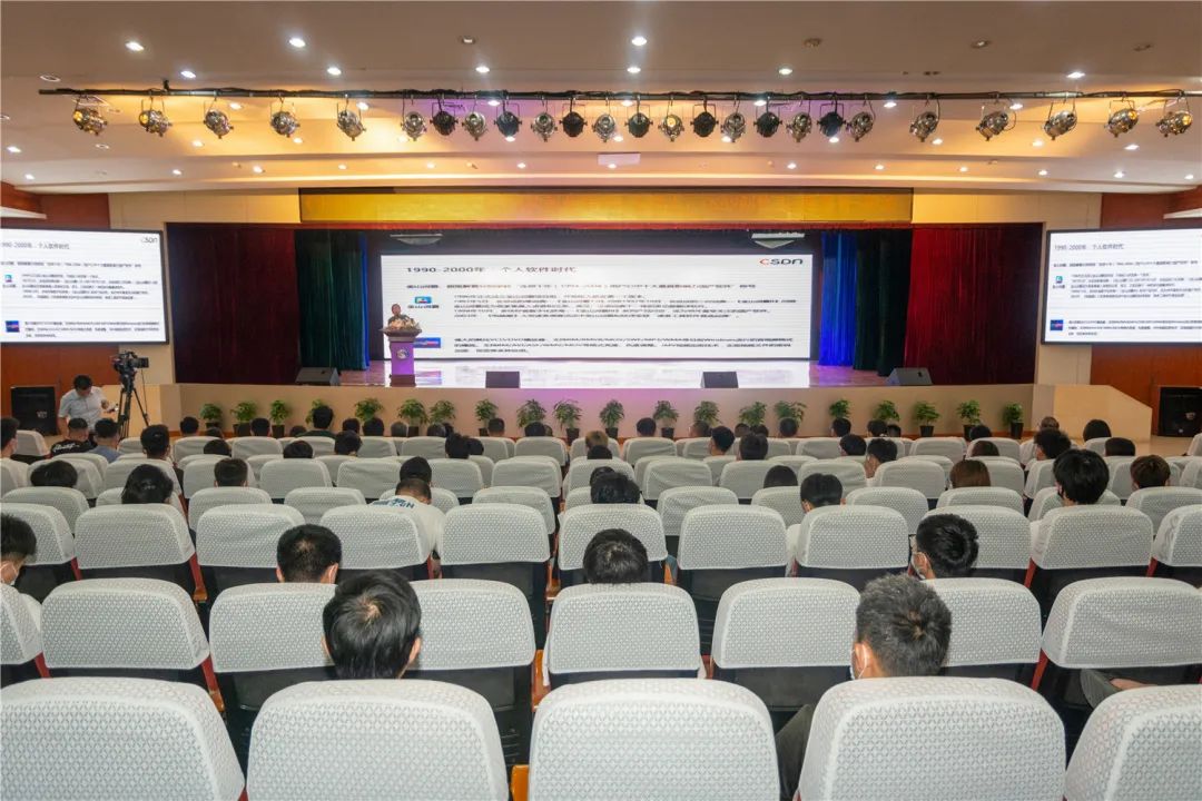 讲座中,蒋涛以《中国开发者的黄金十年及我的创业经历》为主题,分享了自己的创业之路,重点讲述了CSDN的起源和发展,并介绍了程序开发行业的过去、现在和将来。他还表示,2020-2030年将会是中国建设自主可控的信息技术产业的黄金十年,科技是第一生产力,开源是科技发展的路和桥,并探讨了中国开源软件的历史机遇和商业机遇。他从助力教育、加速开源、赋能企业、人才培养、C认证体系等方面介绍分析了CSDN的发展理念及软件人才培养计划。
