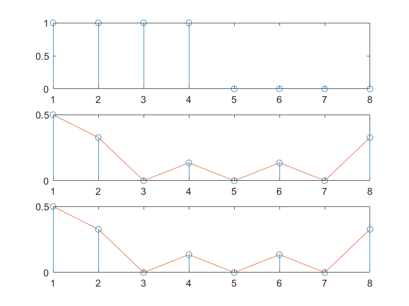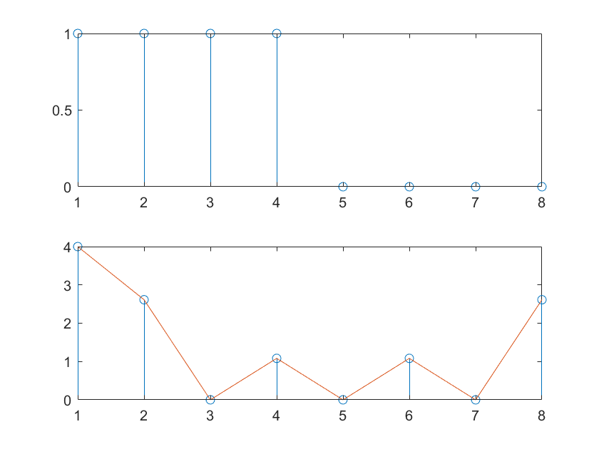 % Xm = [1,1,1,1,0,0,0,0]; %8点时域