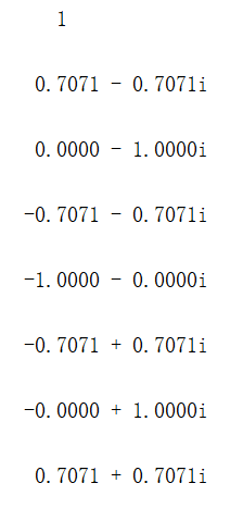 Wn(j) = exp(-i * (2*pi/N))^(j-1); %这里的i为虚数单位