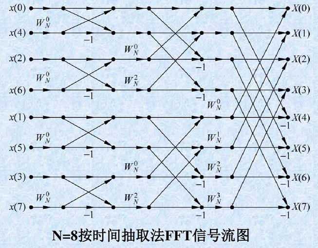 8点时间抽取的基2-fft,蝶形图如下图所示。