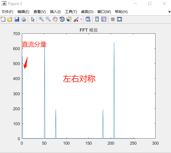 左右对称, 中心点为N/2,使y(i) = [x(i) + x(N - i) ]/N , i ∈ (1:1:N/2) N = 256