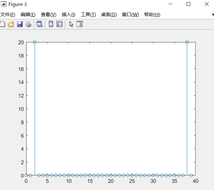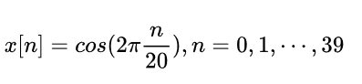 上面的信号是40个采样,如果给一个采样频率是100Hz,那么信号长度就是0.4s,原信号在40个采样内振动了两个周期,可以算出其频率为5Hz。